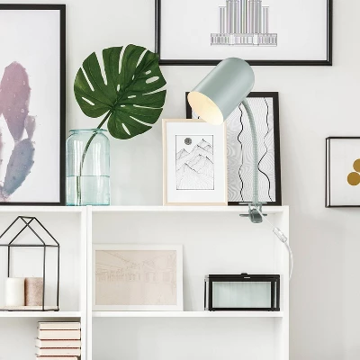 The Carter Desk Lamp by Globe Electric offers a youthful spin on a timeless industrial design. Form and function come together with a clip-arm base and sleek pivoting head white the adjustable gooseneck offers the playful feel. Perfect for a workspace, living room, bedroom, or den, the clip-arm can be placed on almost any surface to provide ideal task lighting. Further adding to the versatile design, the matte teal finish adds the perfect pop of color to all decor.