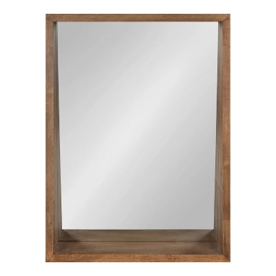 The Hutton wall mirror is a lovely, robust accent piece that is ready to impress and delight. This rectangular mirror is both decorative and functional, with a 5-inch depth to add a practical shelf for storage and display. The Hutton wall mirror has a sturdy, solid wood frame with a natural rustic finish to give a farmhouse vibe to any room of your home. The overall dimensions of this sophisticated wall mirror are 18 inches wide by 5 inches deep by 24 inches tall, making it an excellent and eye-catching focal point in your living room, bedroom, entryway, office, dining room, or kitchen. The large display size makes it an attractive bathroom mirror over a single or double vanity as well. You could use the included shelf as a place for soap, lotion, bathroom necessities, and more. If you decide to show off this mirror in any other room of the home, the Hutton’s shelf would be perfect for small photos or succulents. Wherever you choose to hang it, the Hutton wall mirror is easy to install with metal D-ring hangers attached to the back of the frame.