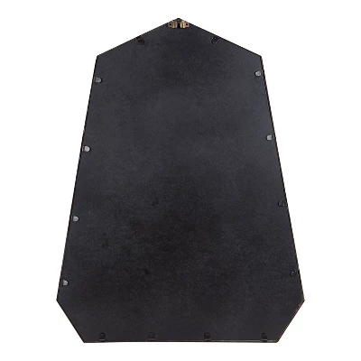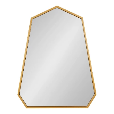 Craft a rich boho decor theme with this beautiful irregular wall mirror throughout your home. The Hammell mirror brings an eccentric yet sophisticated decor element to any wall of your home. Inspired by modern geometric forms, the Hammell has a unique heptagon shape with a diamond-inspired look. Along the sharp lines of the frame, you’ll find a brilliant painted gold finish that is capable of blending into various spaces throughout your home. The overall dimensions of the Hammell mirror are 23 inches wide by 1 inch deep by 29.75 tall, making it an ideal decorative focal point to capture the attention and fascination of all of your guests. Adding a mirror with a large, reflective surface area like the Hammell increases the brightness of your space and makes it feel more open and dimensional. Hang this charming accent piece above your mantle, entryway console table, bedroom dresser, or over your vanity as a bathroom mirror. Hang this mirror in a matter of minutes with the metal sawtooth hangers attached to the MDF back.
