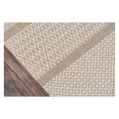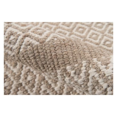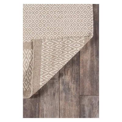 The nuetral tones of this traditional area rug feel rustic, yet refined. Earthy shades of natural beige, brown and gray form subtle striations, stripes and geometric patterns rich in global design influences. Hand woven from 100% natural wool fibers with unparalleled care and craftsmanship, the geometric flatweave patterns of each decorative floorcovering look exceedingly luxe when layered over carpet, tile and wood.