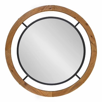 Create an eye-catching focal point that blends shabby-chic farmhouse aesthetics with modern sophistication with the Whalen Wall Mirror from Kate and Laurel. The mirror itself has a round, wooden frame, with a brown finish for a look that appears handcrafted, giving your home a decorative, shabby-chic theme. It takes that rustic-inspired aesthetic and blends it into contemporary decor themes with its round, on-trend shape. The Whalen Mirror creates a dynamic wall display and home statement, standing at a robust 32″ diameter. Thanks to this oversized frame, the rustic Whalen Wall Mirrors makes a bold statement and an eye-catching focal point in any living room, bedroom, entryway, kitchen, or dining room. The size and shape of this mirror also makes it an interesting vanity mirror for your master bedroom or powder room, providing a traditional display piece with practicality. Each Whalen Mirror includes metal D-ring hangers secured to its back for a quick and easy wall display in a matter of minutes.