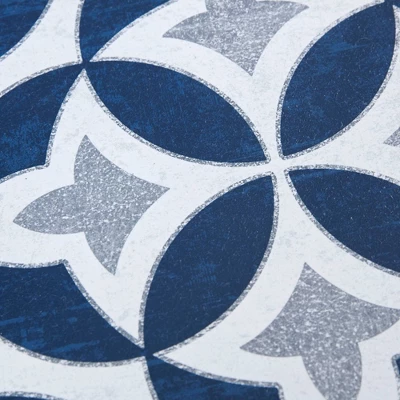 Add the perfect pop of color with our Madison Park Patterned Tiles Distressed Navy Blue Medallian 3-piece Wall Decor Set by Artist Z Studio. This three piece set features a global inspired pattern in dynamic shades of deep blue, crisp white, and cool grays creating beautiful Grecian like tiles. Each piece of art is printed on paper and gel coated for texture and a light gloss look, then finished off with a white frame for a shadowbox effect. Sawtooth finish is featured on reverse of each piece for easy hanging; easily assemble the pieces together horizontally or vertically to fit any space or hang pieces separately for a more stylized approach. Spot clean only and measuring 13.75×13.75″, this set is perfect to add subtle color to any entry way, kitchen space, or bathroom.