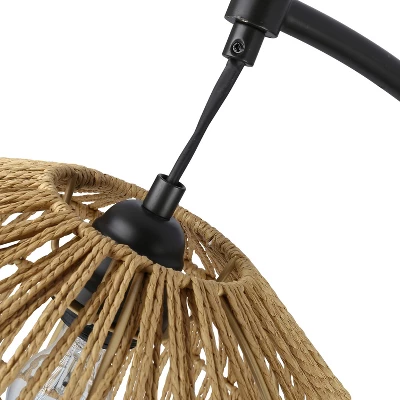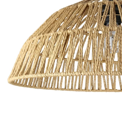 - Rattan bowl shade in a tan finish and intricately woven design for a natural touch