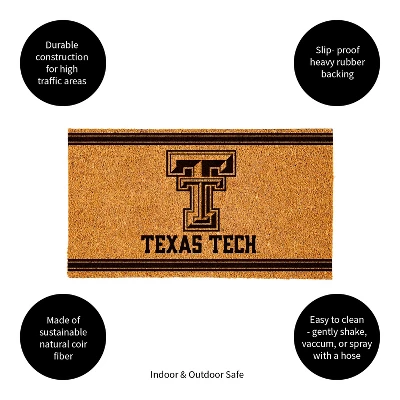 - Measures 28 x 16 inches. Step up your school spirit with this Texas Tech University Logo Turf Mat.