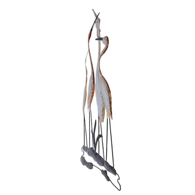 A blend of traditional and modern styles, the StyleCraft Four Cranes Around the Watering Hole Metal Wall Decor works well with many different types of decor. The white and brown alloy finish and modern shape pair well to create a unique piece. Add this conversation piece to your living room or dining room.