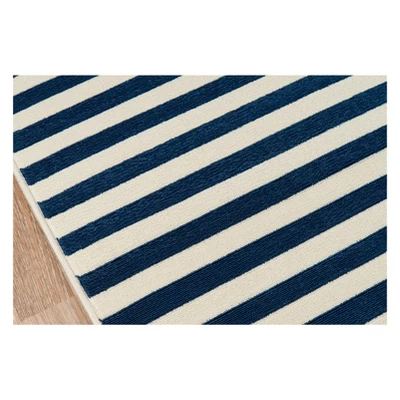 This elegant indoor/outdoor all-weather area rug offers everything you need to complete the ultimate outdoor room. Repeating stripes, diamonds, trellis and arabesque shapes meet nautical icons like ropes, anchors and waves, adding a luxe layer to all interior and exterior living spaces, including patios, porches and pool decks. Durable power-loomed construction ensures each decorative floorcovering transitions beautifully from season to season while the vibrant color palette and enduring polypropylene fibers offer endless design possibilities indoors and out.