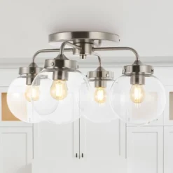 15″ Marc Metal/Linen LED Semi-Flush Mount Chrome (Includes Energy Efficient Light Bulb) – JONATHAN Y