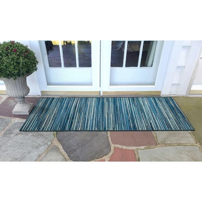 This decorative area rug is truly the perfect everywhere piece that will compliment nearly every decor style. Featuring an impossibly thin stripe pattern in shades of blue and white that are highlighted by the rich, textural weave, this design will effortlessly tie together any space inside or outside your home. Made in Egypt from 75% polypropylene/25% polyester, the Marina Collection is Power Loomed to create intricate designs with a broad color spectrum and a high-quality finish. The material is flatwoven, low profile, weather resistant, UV stabilized for enhanced fade resistance, durable and ideal for those high traffic areas such as your patio, sunroom, kitchen, entryway, hallway, living room and bedroom making this the ideal indoor or outdoor rug. Detailed patterns are offered in an eclectic mix of styles ranging from tropical, coastal, geometric, contemporary and traditional designs; making these perfect accent rugs for your home. Limiting exposure to rain, moisture and direct sun will prolong rug life.