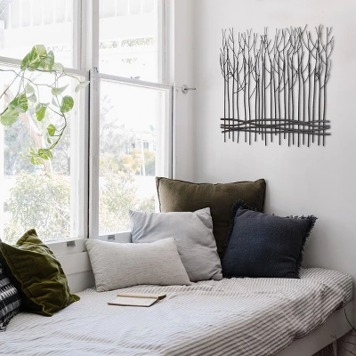 Designed to bring our the natural beauty of your home, this leafless metal trees with its serpentine fence crafted from metal combine to form a handsome piece of wall decor that is elegant in its simplicity. The abstract field of trees with interwoven branches wall decoration captures the beauty of nature and is a substantial piece of art that is ideal for above your bed, mantle, sofa, or in your entryway to greet your guests. This piece of wall decor brings a natural aesthetic to your walls. Handcrafted from high quality iron metal, the open design of a field of trees that sit in front of a weaving simple fence allows your wall to peek through giving it a unique feel. This piece arrives with wall mounting hardware so you can get to decorating right out of the box. The field of trees and fence is finished in rustic black finish with brown accents proving a contemporary style that will complement most interior decor trends. It is a beautiful item that will complete any room of the home!