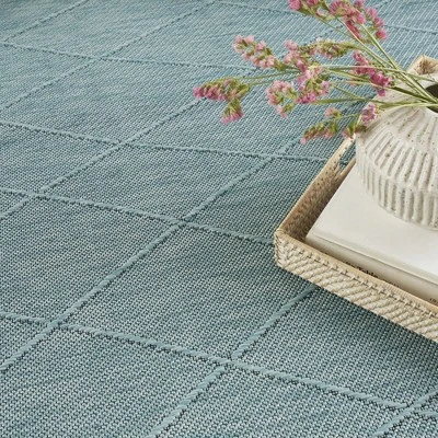 This washable outdoor rug from the Practical Solutions Collection brings visual appeal with a touch of texture to your space. The geometric lattice pattern, woven onto a flat ground, is made from polypropylene yarns that are softly textured and easy to clean. Finished with a non-slip backing for added safety on hard floors – perfect inside in high-traffic areas inside the home as well as outside. Place rugs sized 8 x 10 or larger in a commercial washing machine.