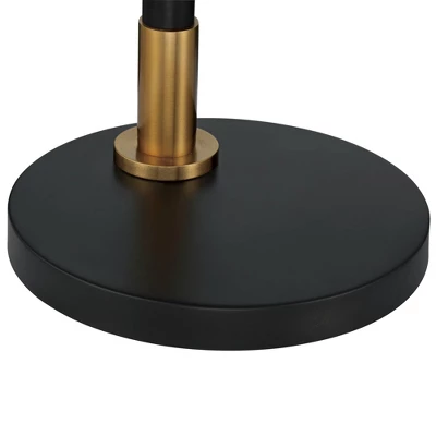 Focus light where you need it most with this comtemporary floor lamp from the Possini Euro Design collection. Mixed metal finishes of warm gold and black combine with a caged linen shade for a perfect touch of glamour. Place next to your favorite reading chair or behind a sectional.