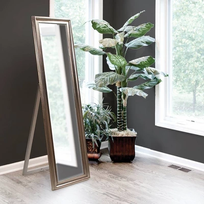 Our Taylor Mirror is a great piece for a dressing room or in the corner of a sitting room. It has an easel back so it can stand all on its own. It features a simple yet sleek, rectangular ribbed frame. It is then finished in a bright silver leaf. Perfect for any look from modern to traditional. The glass of the mirror is beveled adding to its beauty and style.