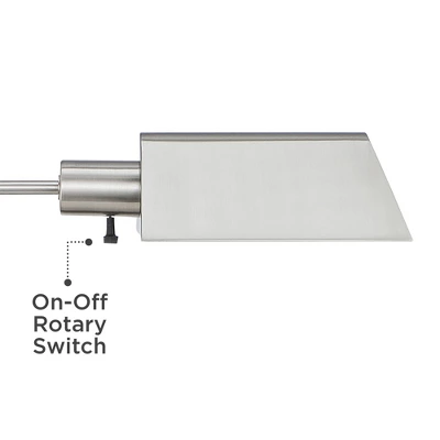 - Brushed nickel finish over metal construction. Adjustable swing arm.