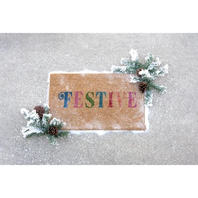 Update your holiday décor with Shiraleah’s “Festive” doormat. This charming doormat features a natural background with screen printed text, “Festive”, in a block, colorful font. Measuring 30” x 18”, and made from coir with vinyl backing, this doormat is the perfect way to add a little festive charm to your exterior.