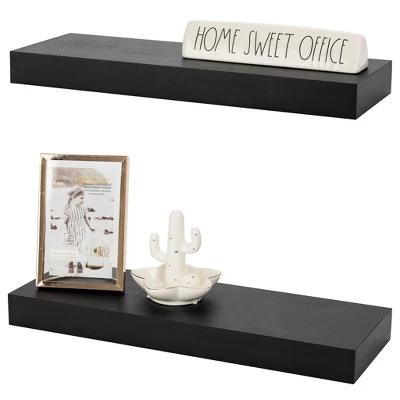 Style meets function while taking up zero SQUARE feet! Whether for framed photos, succulents, or home décor, the Sorbus Floating Shelf Set is the perfect platform for storage and display. It features a rectangular silhouette with a wood finish for rustic appeal. With a timeless look, this floating shelf fits most décor and can be installed virtually anywhere! Fill an empty wall space above a desk, fireplace, entryway, between windows, and more. Hang alone or pair with other styles from the Sorbus Floating Shelf Collection. Great for any living room, bathroom, hallway, and more. Take to the walls and turn your prized possessions into true conversation pieces! Hang this floating shelf in the laundry room for storage, in the living room over the fireplace, in gallery style in a hallway, or to showcase collectibles in the home office. For a spa-like retreat, use as a bathroom shelf to display small toiletries for overnight guests. Whether traditional or modern farmhouse, this floating wall shelf is suitable for any room around the home. Enjoy a sturdy design that is easy to install. Attaches firmly to the wall with minor assembly required for hanging. Mounting hardware INCLUDED and made of beautiful MDF with PVC + Bracket. 16.25” L x 5.50” W x 1.5″ Thick